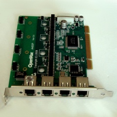Четырехпортовая аналоговая плата, позволяющая создать АТС с подключением аналоговых линий. Плата комплектуется модулями FXO для подключения городских линий или FXS для подключения аналоговых телефонов, факсов. Модули устанавливаются в необходимом количестве и позволяют коммутировать аналоговые линии на Asterisk. Плата поддерживает DTMF и пульсовый набор.